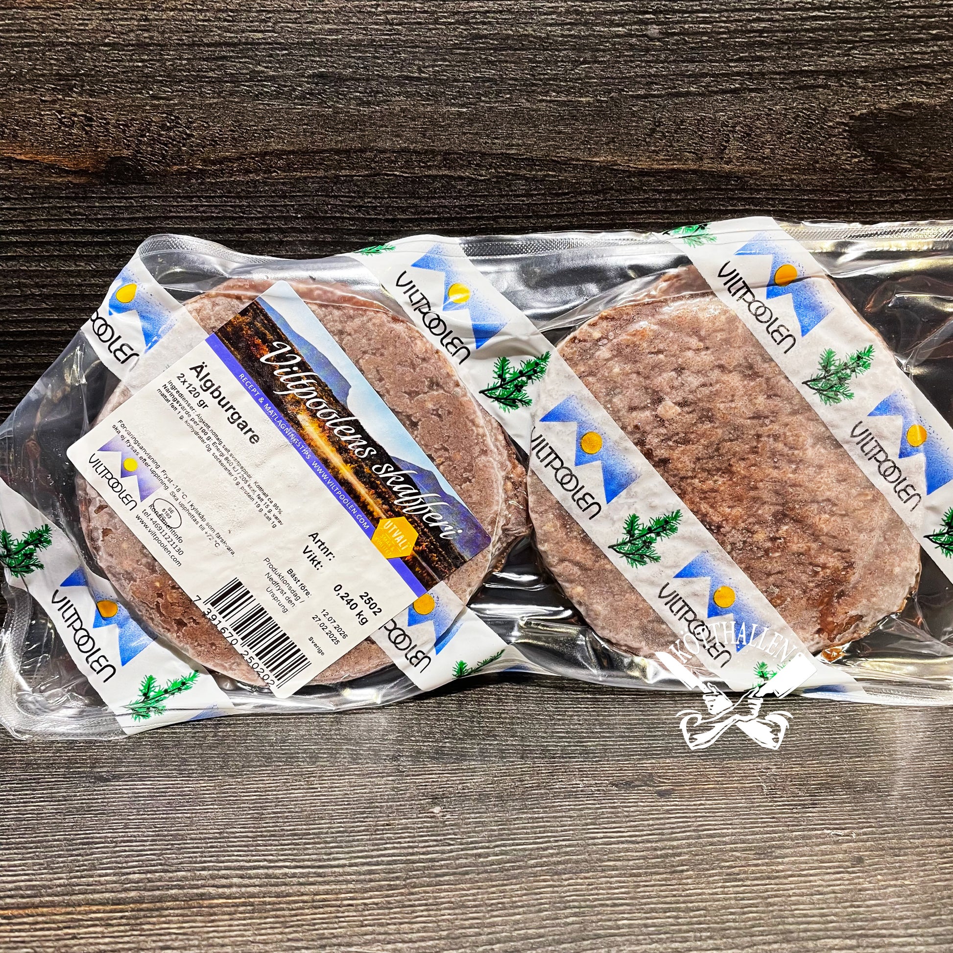 - Älghamburgaren är köttig, robust och ren – som en hamburgerklassiker fast med riktig viltkaraktär. Mörkt älgkött med naturlig umami och mild fettinjektion ger full smak utan att tappa saftigheten. Grilla eller stek, toppa med ost, rostad lök och den där gröna röran – och glöm inte brödet. Smaken är rak och naturlig, med ett stänk av skog i varje tugga. En kall öl och du är i himlen.