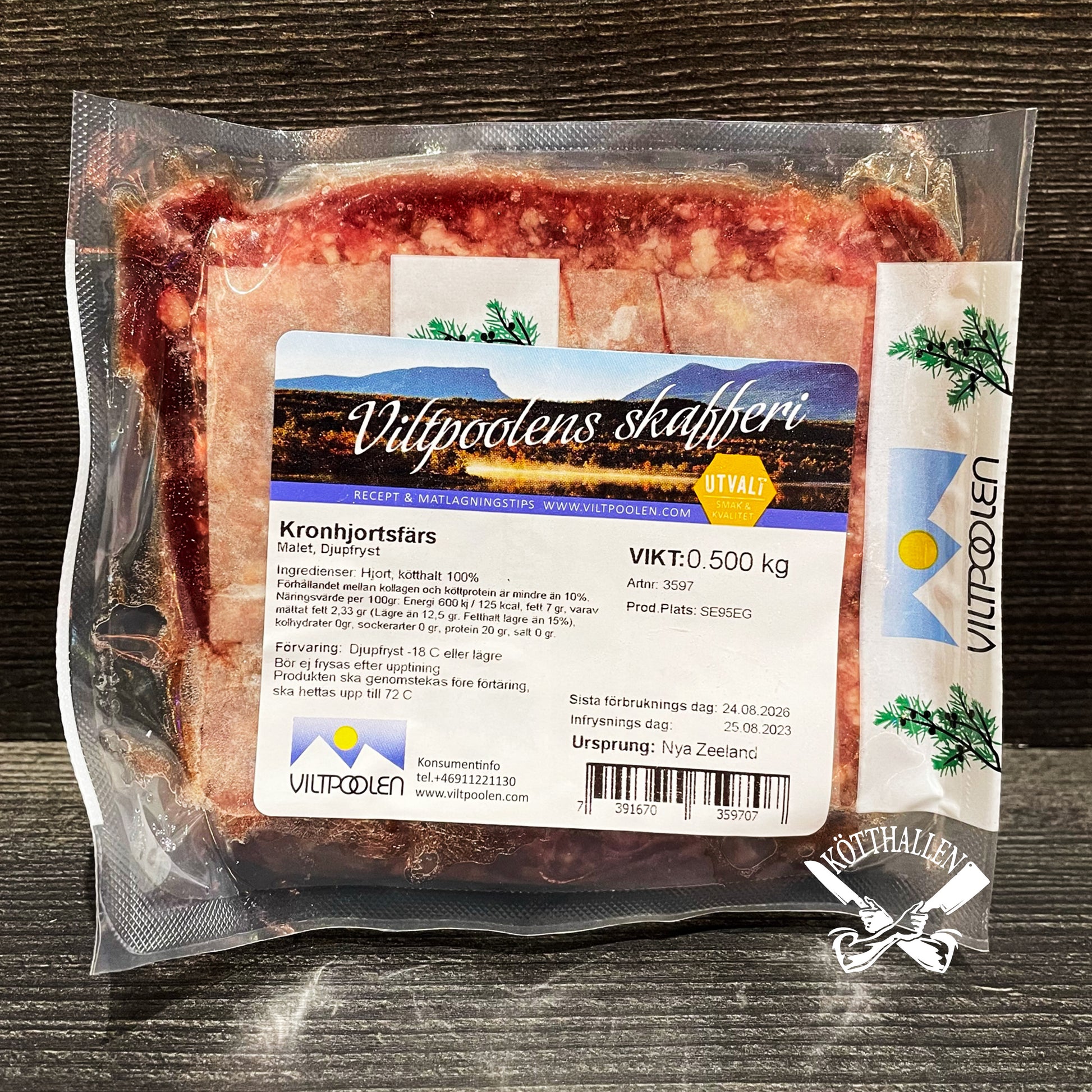 - Färs från kronhjort, magert med en mild, naturlig viltsmak