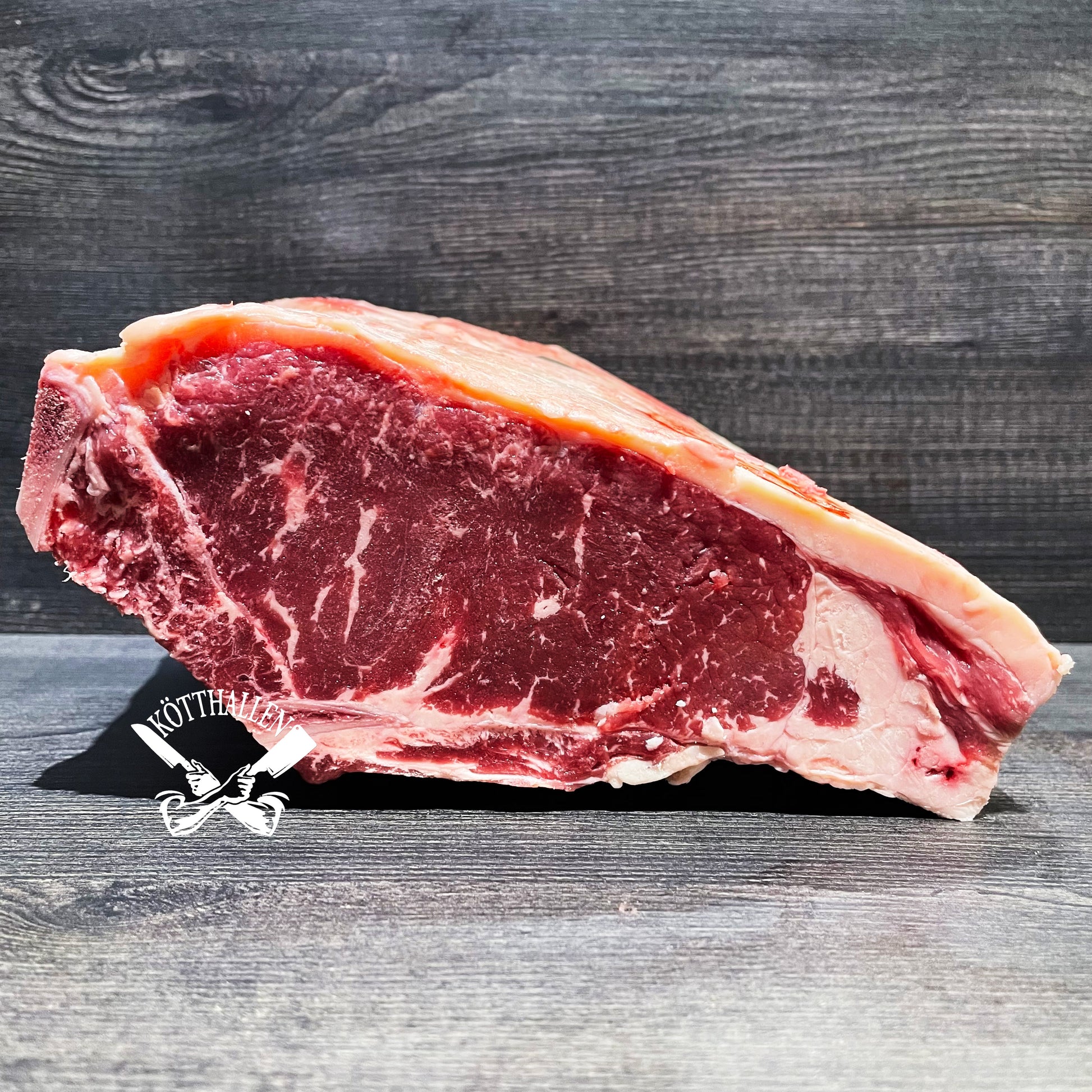 - NY Strip Steak är en tjock skiva ryggbiff med ben, utan klack.