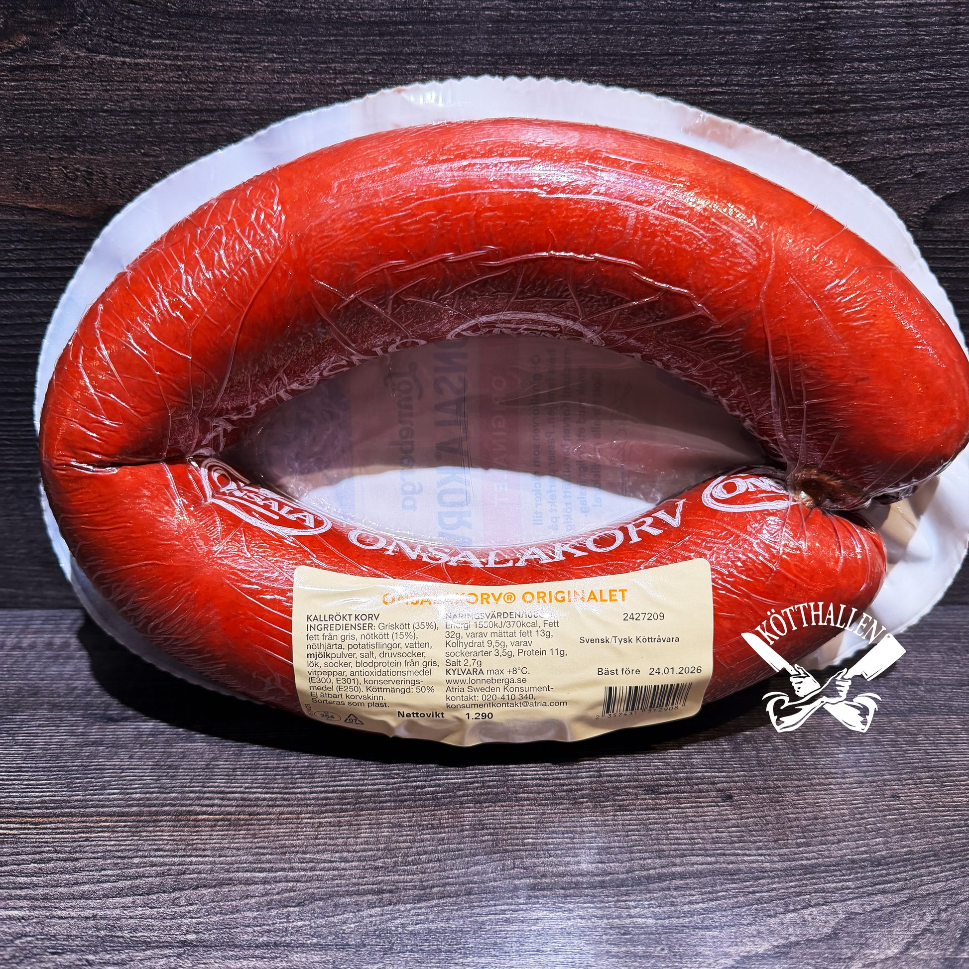 • Onsala Korvs kallrökta originalkorv är en ikon – fast, smakrik och med en elegant kallrökt ton som gör den otroligt användbar. Perfekt kallskuren, på buffé eller som smakrik ingrediens i matlagningen. En riktig kvalitetskorv som visar varför Onsala är ett av landets mest uppskattade charknamn.
