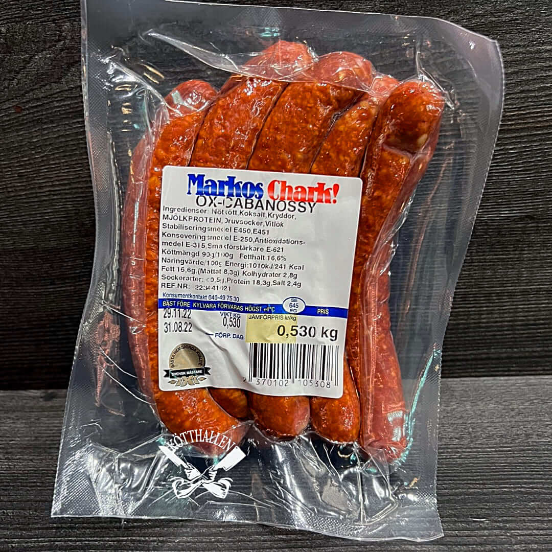 - Ox Cabanossy är en exklusiv variant gjord på oxkött med en fyllig och intensiv smak. Den har en lätt rökig ton och en fast textur. Perfekt som snacks, på charkbrickan eller att grilla för en extra smakupplevelse.