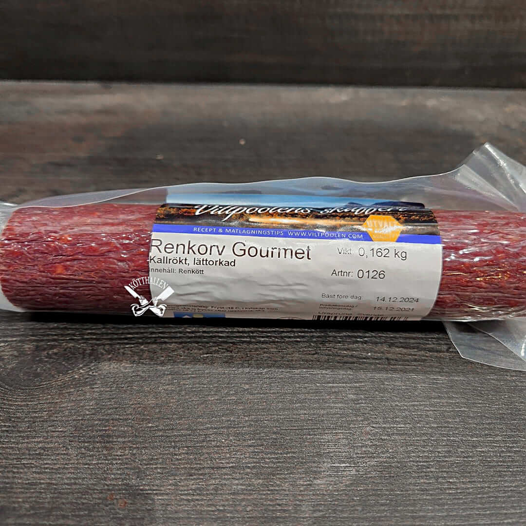 - Kallrökt renkorv från Viltpoolen.