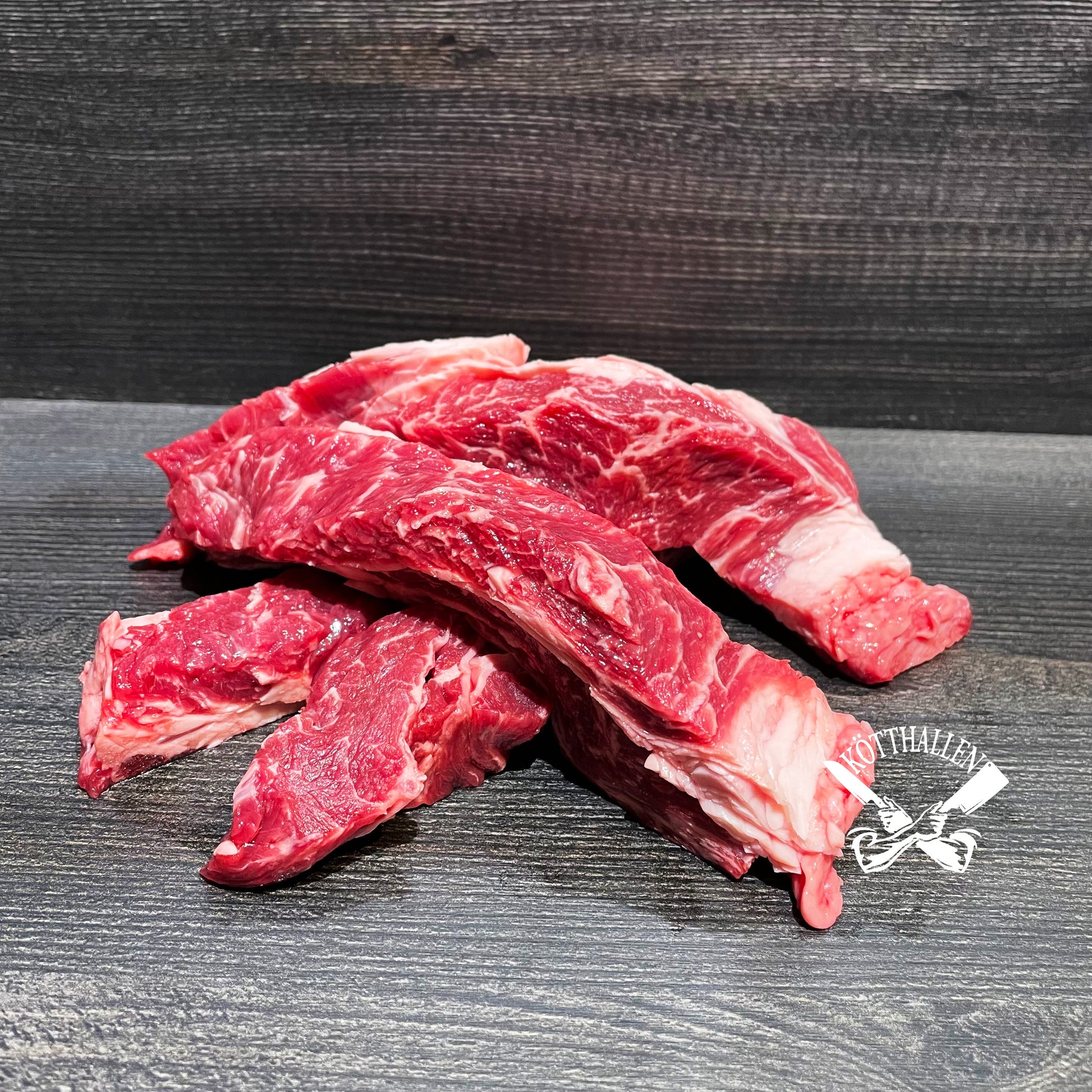 - Detalj av certifierad F1 Wagyu (50% Wagyu 50% Angus) från välrenommerade Snake River Farms. Serveras årligen på Oscarsgalan.