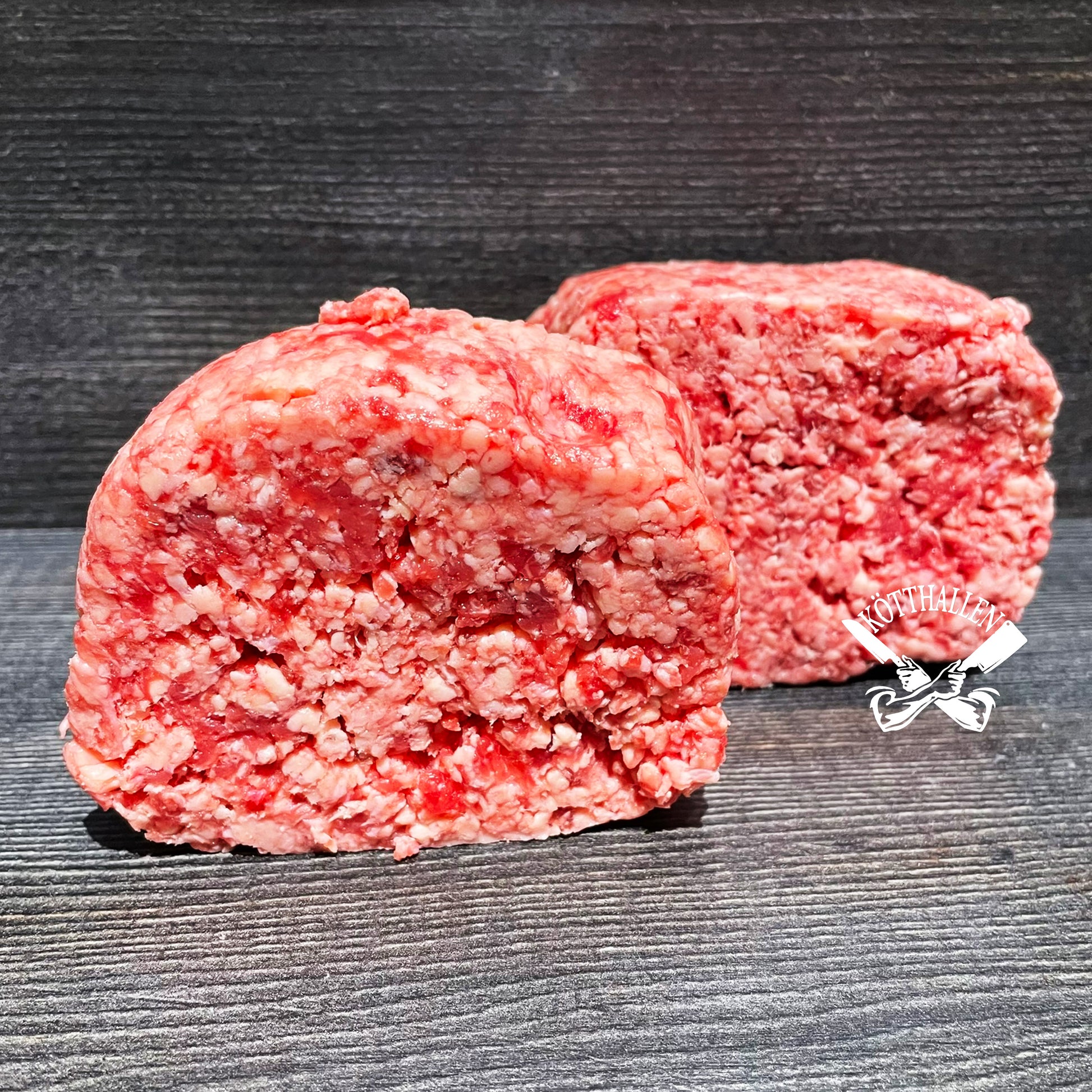 - Vid köp med hemleverans: säljs som styckvis vakuumförpackning där varje burgare väger mellan 120 och 130 g (kilopris). Köper du flera burgare så vakuumpackas de tillsammans i lämpliga mängder. Levereras med kyltransport.